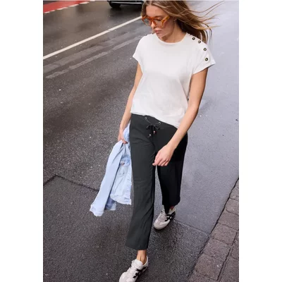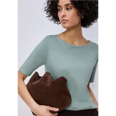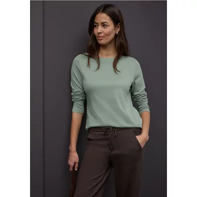 Street One Dames Shirt met V-hals in linnenlook in Roze