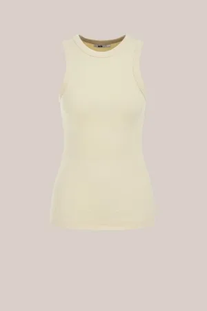WE Fashion – Dames tanktop van ribstof – Lichtgeel – Katoen –