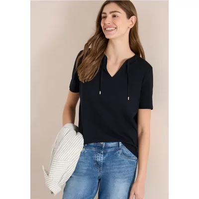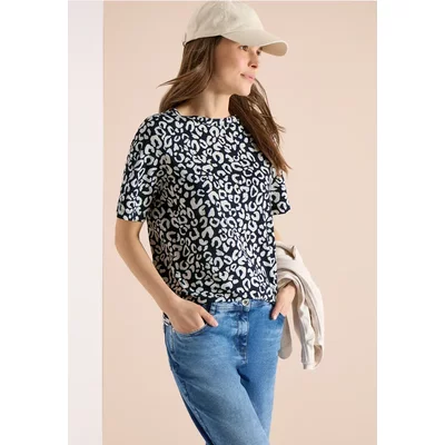 Cecil Dames Shirt met visgraatmotief en jacquardmotief in Blauw