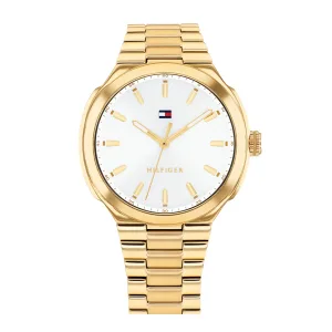 Tommy Hilfiger goudenkleurige dames horloge met witte wijzerplaat