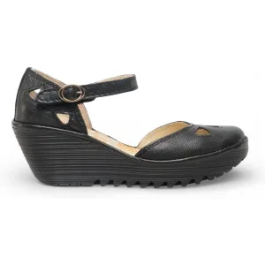 Fly London Yuna damessandalen met sleehak van zwart leer