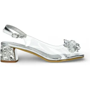 Laura Vita Mily-22 instapsandalen met Cinderella-hak in transparant zilver voor dames