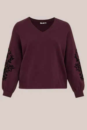 WE Fashion – Dames sweater met opdruk – Curve – Regular fit – Aubergine – Katoen – Plus Size