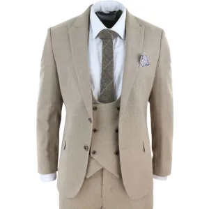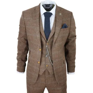 Heren 3-Piece Wollen Pak Eikenbruin Tweed Visgraat Ruit Peaky Blinders Gatsby