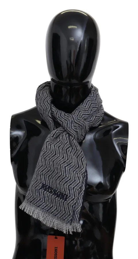 Missoni Mannen Grijs Zigzagpatroon Kasjmier Unisex Nek Wikkel Sjaal