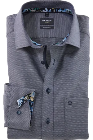 OLYMP Luxor 24/Seven Jersey shirt blauw, Bedrukt