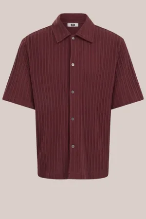 WE Fashion – Heren relaxed fit overhemd met structuur – Relaxed Fit – Bordeauxrood – Katoen –
