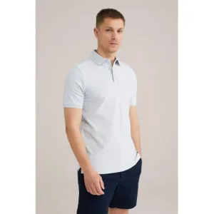 WE Fashion slim polo met ingebreid patroon lichtblauw