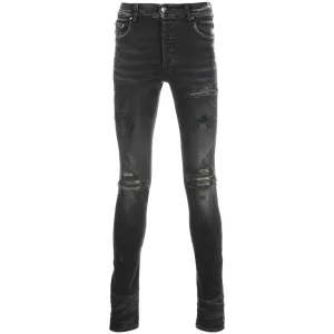 Amiri leren Camo MX1 verouderde zwarte jeans