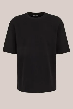 WE Fashion – Heren relaxed fit T-shirt met structuur – Relaxed Fit – Zwart – Katoen –