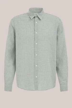 WE Fashion – Heren regular fit overhemd van linnenmix – Regular fit – Donkerblauw – Linnen –