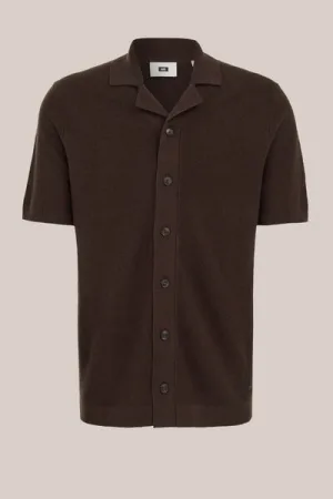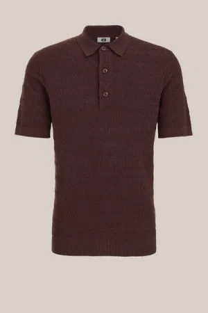 WE Fashion – Heren regular fit fijngebreide polo van boucle‑garen – Regular fit – Donkerbruin – Katoen –