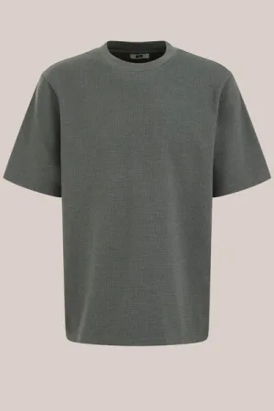 WE Fashion – Heren relaxed fit T-shirt met structuur – Relaxed Fit – Donkergroen – Katoen –