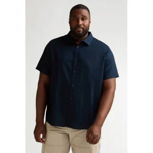 Petrol industries Plus Size regular casual overhemd met linnen donkerblauw