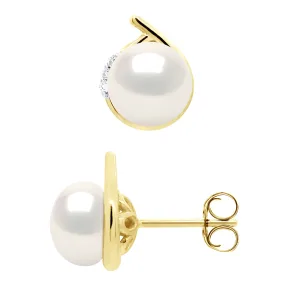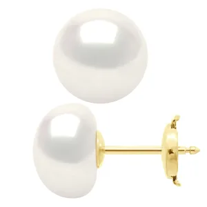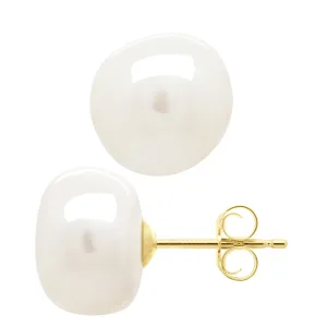 Oorbellen in Geel Goud 375 en Echte Cultiveerde Zoetwaterparels Knop 10-11 mm