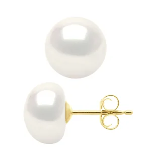 Oorbellen Geel Goud – Echte Gecultiveerde Zoetwaterparels Knop 9-10 mm