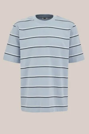 WE Fashion – Heren relaxed fit T-shirt met strepen – Relaxed Fit – Pastelblauw – Katoen –