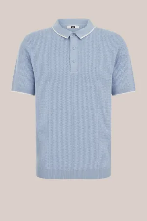 WE Fashion – Heren regular fit gebreide polo – Regular fit – Pastelblauw – Katoen –