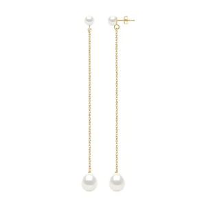 Dubbele Oorbellen Geel Goud – Echte Gecultiveerde Zoetwaterparels Knop 5-6 mm + Peer 8-9 mm