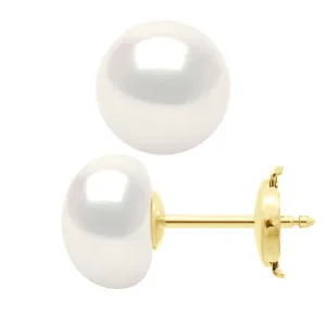 Oorbellen – Geel Goud – Echte Gecultiveerde Zoetwaterparels Knop 9-10 mm