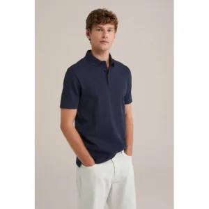 WE Fashion – Heren regular fit polo met rits en borstzak – Regular fit – Donkerblauw – Katoen –