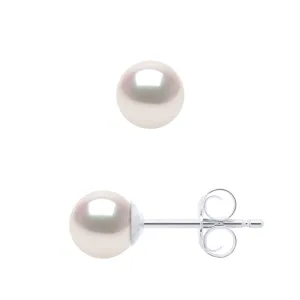 Oorbellen in Wit Goud 750 en Echte Geclassificeerde Cultuurparels Akoya Japans Rond 5-6 mm