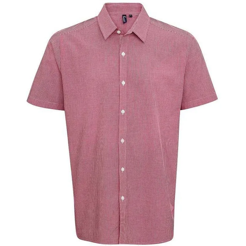 Premier Heren micro gingham geruit katoenen overhemd met korte mouwen
