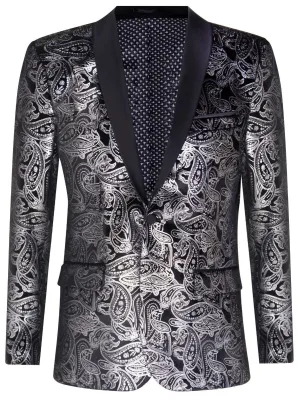 Heren klassieke zilveren Paisley zwart fluwelen smoking dinerjas op