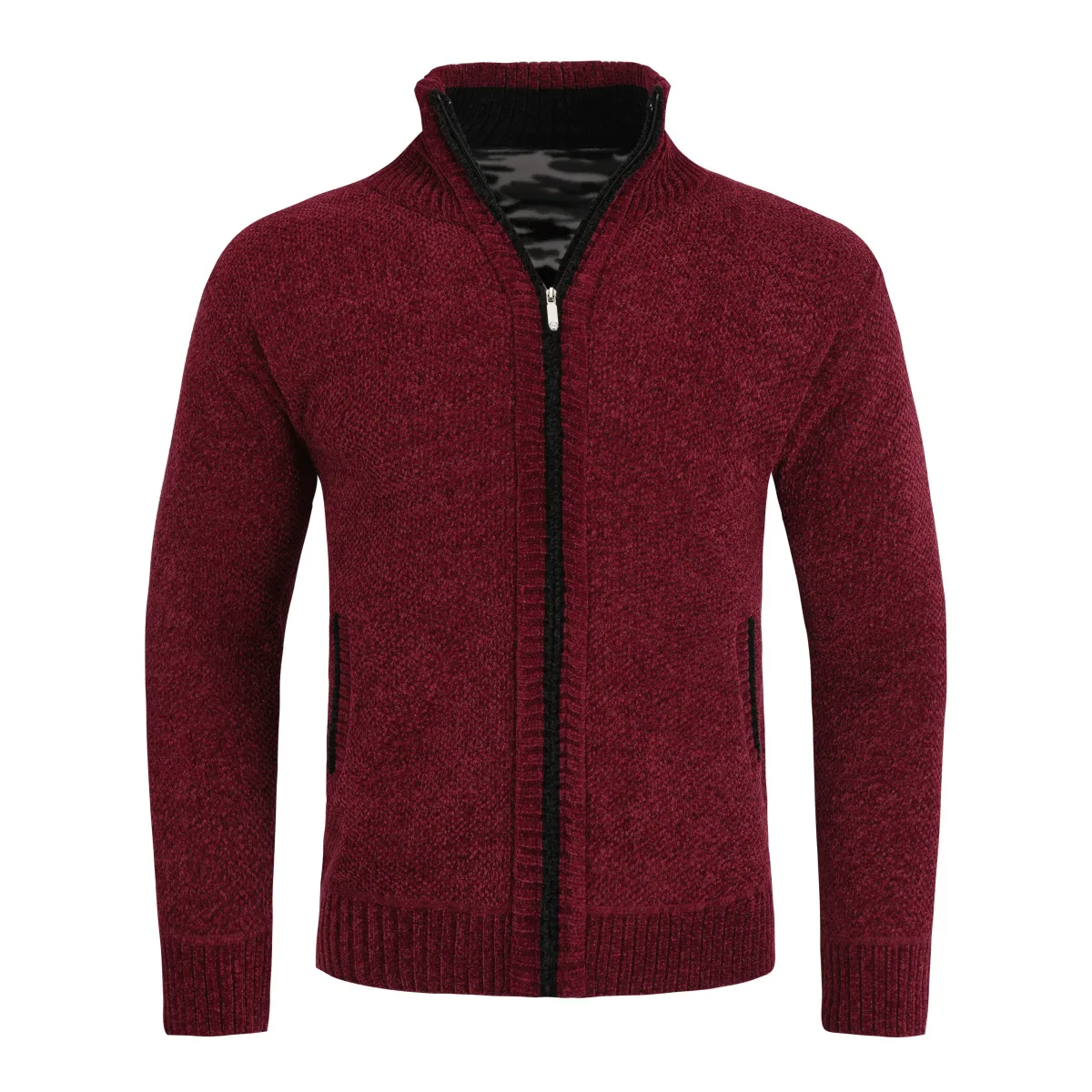 Herenvest met rits en opstaande kraag, gevoerde grofgebreide trui rood
