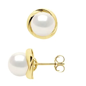 Oorbellen Geel Goud – Echte Gecultiveerde Zoetwaterparels Knop 8-9 mm