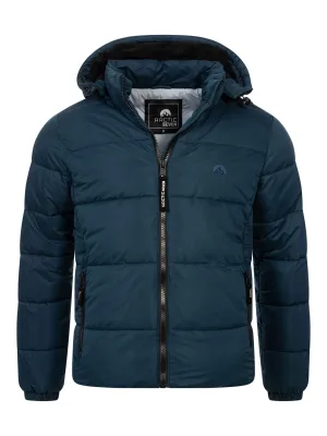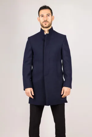 Marineblauwe wolmix overjas met opstaande kraag voor heren