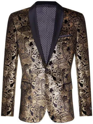 Heren klassieke gouden paisley zwart fluwelen smoking dinerjas op