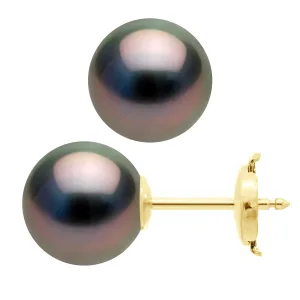 Oorbellen Geel Goud 375 – Echte Cultiveerde Tahiti Parel Rond 9-10 mm