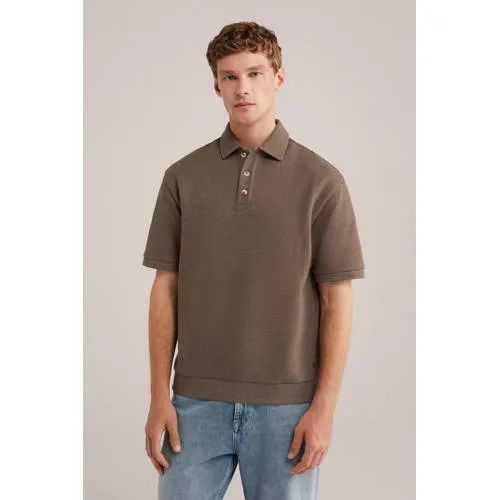 WE Fashion loose polo met textuur bruin
