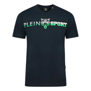Plein Sport Marineblauw T-shirt met gedurfd gespleten logo