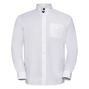 Russell Collection Heren Oxford Easy-Care overhemd met lange mouwen (Wit)