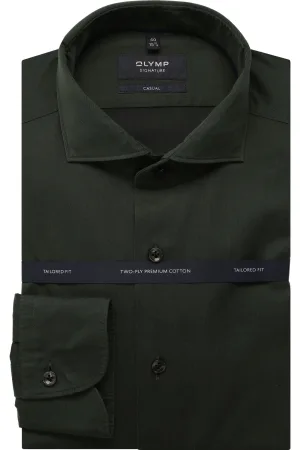 OLYMP SIGNATURE Casual Linnen Overhemd groen, Effen