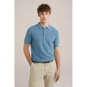 WE Fashion regular polo fijn gebreid blauw