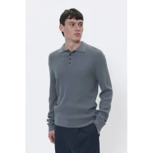 Matinique trui met wol met ingebreid patroon grijsblauw