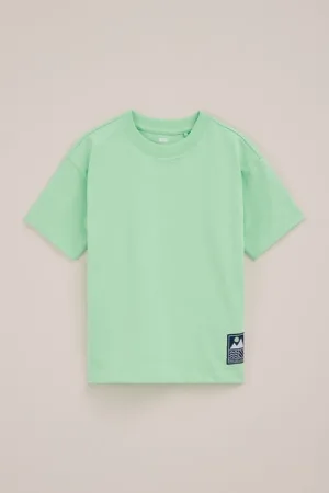 WE Fashion – Jongens T-shirt met patch – Oversized – Felgroen – Katoen –