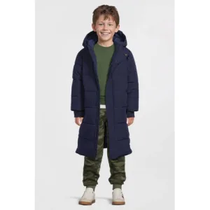 Anytime gewatteerde midi jas met capuchon donkerblauw