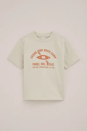 WE Fashion – Jongens T-shirt met print – Regular fit – Beige – Katoen –