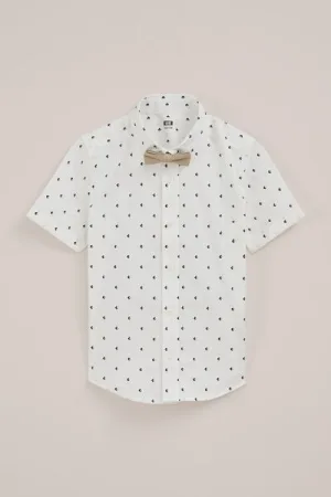 WE Fashion – Jongens korte mouwen overhemd met print – Regular fit – Beige – Katoen –