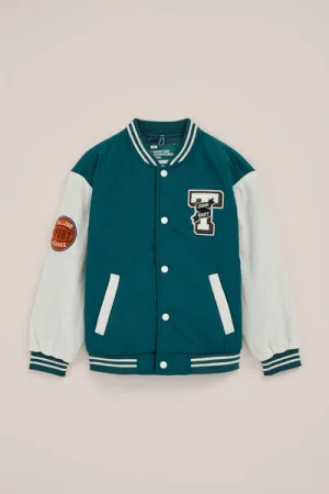 WE Fashion – Jongens bomberjack met embroideries – Regular fit – Donkergroen –