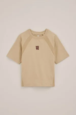 WE Fashion – Jongens T-shirt met print – Oversized – Beige – Katoen –