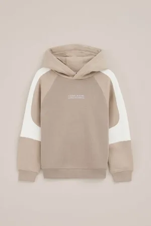 WE Fashion – Jongens hoodie met colourblock – Relaxed Fit – Lichtbruin – Katoen –