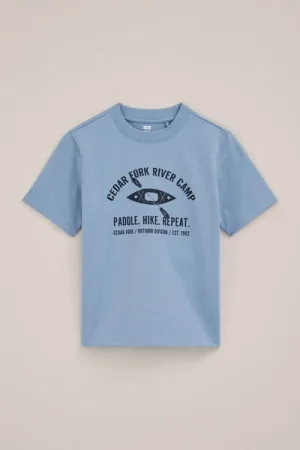 WE Fashion – Jongens T-shirt met print – Regular fit – IJsblauw – Katoen –