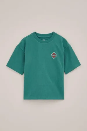 WE Fashion – Jongens seersucker T-shirt met embroidery – Oversized – Groen – Katoen –