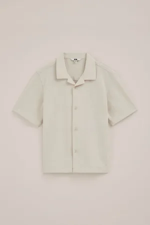WE Fashion – Jongens fijngebreid overhemd met embroidery – Regular fit – Beige – Katoen –