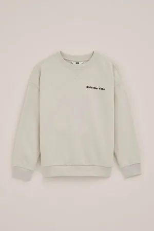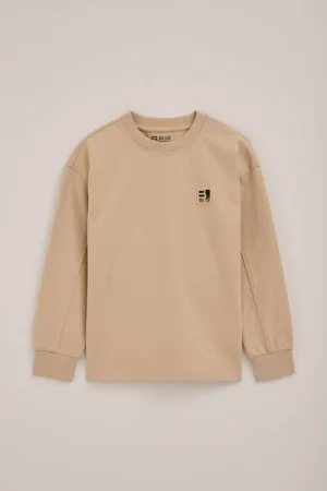 WE Fashion – Jongens sweater met print – Relaxed Fit – Beige – Katoen –